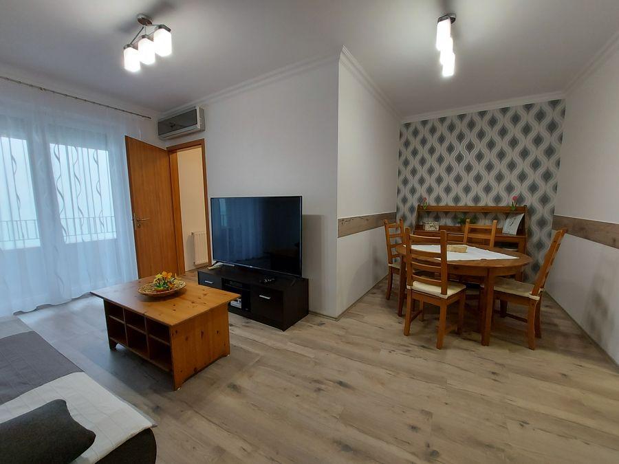 Elrendezése: előszoba, nappali- étkezővel, beépített-felszerelt konyha, hálószoba, fürdőszoba WC.,(mosógép van), panorámás erkély. Az erkélyről a gyönyörű Balatont, csodás naplementét, és az északi part hegyeit láthatjuk. Vendégeinket 5 főig tudjuk fogadni, lift, Wifi, LCD Tv, légkondi van.